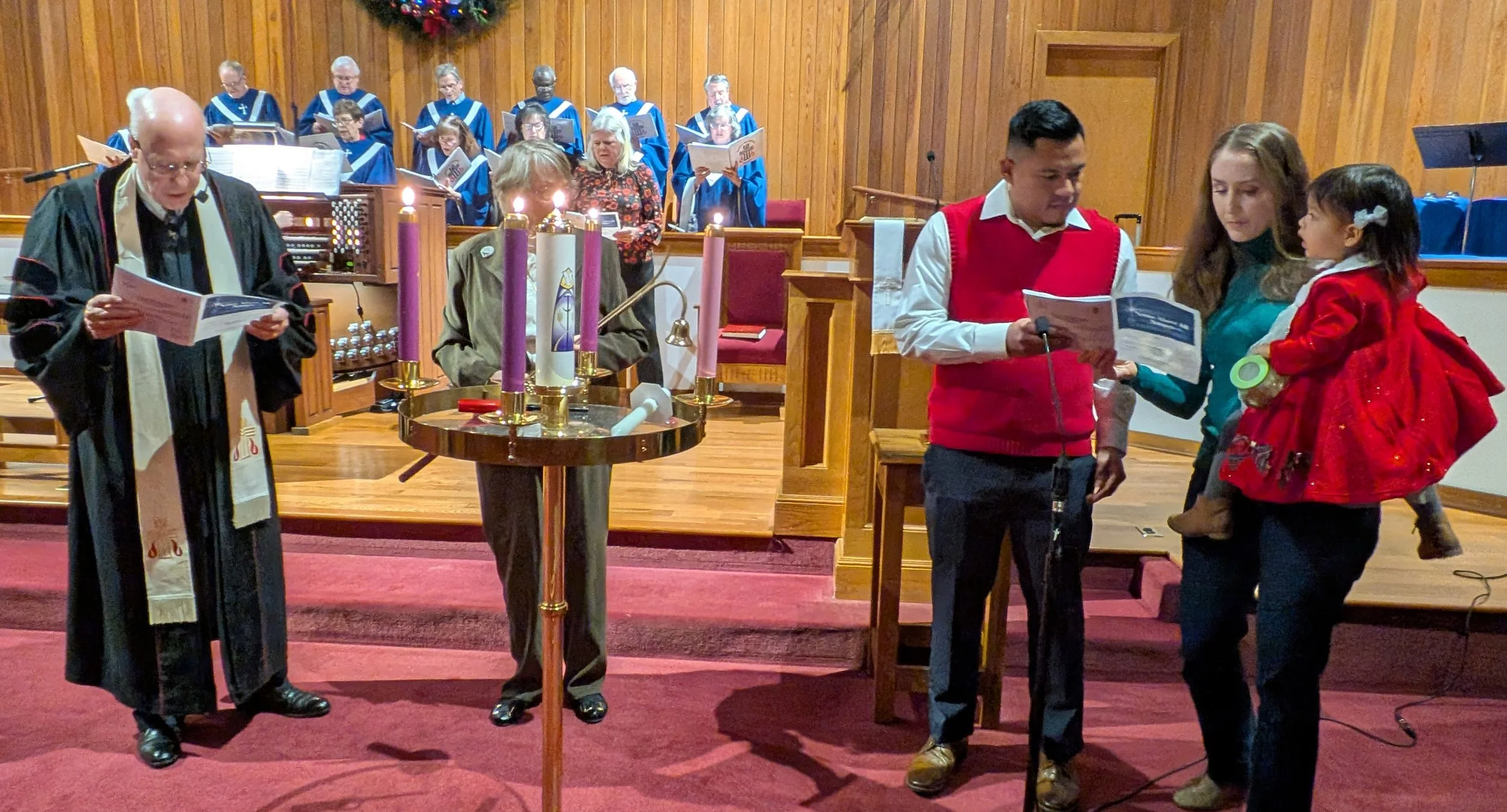 The Chancel Choir prepared beautiful anthems and carols to share as their gift to God and to our church family. The congregation also were invited to sing three hymns during this service as well as several familiar Christmas carols: "O Come, All Ye Faithful," "Lo, How a Rose E'er Blooming," "Away in a Manger," "Hark! The Herald Angels Sing," "We Three Kings," and "Joy to the World"! The organ supported and encouraged our singing and were joined by wonderful percussion to take us to a new level of praise.